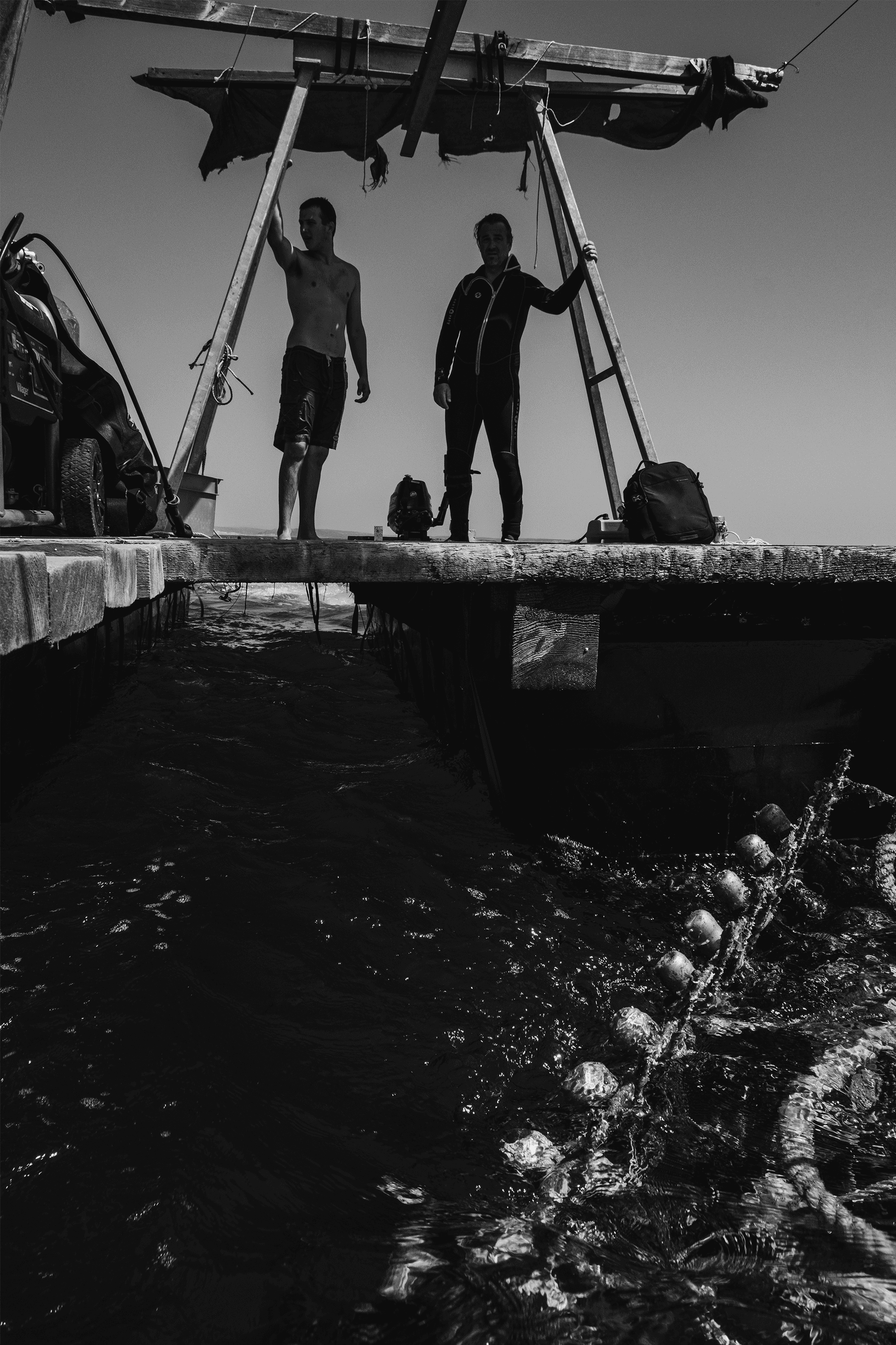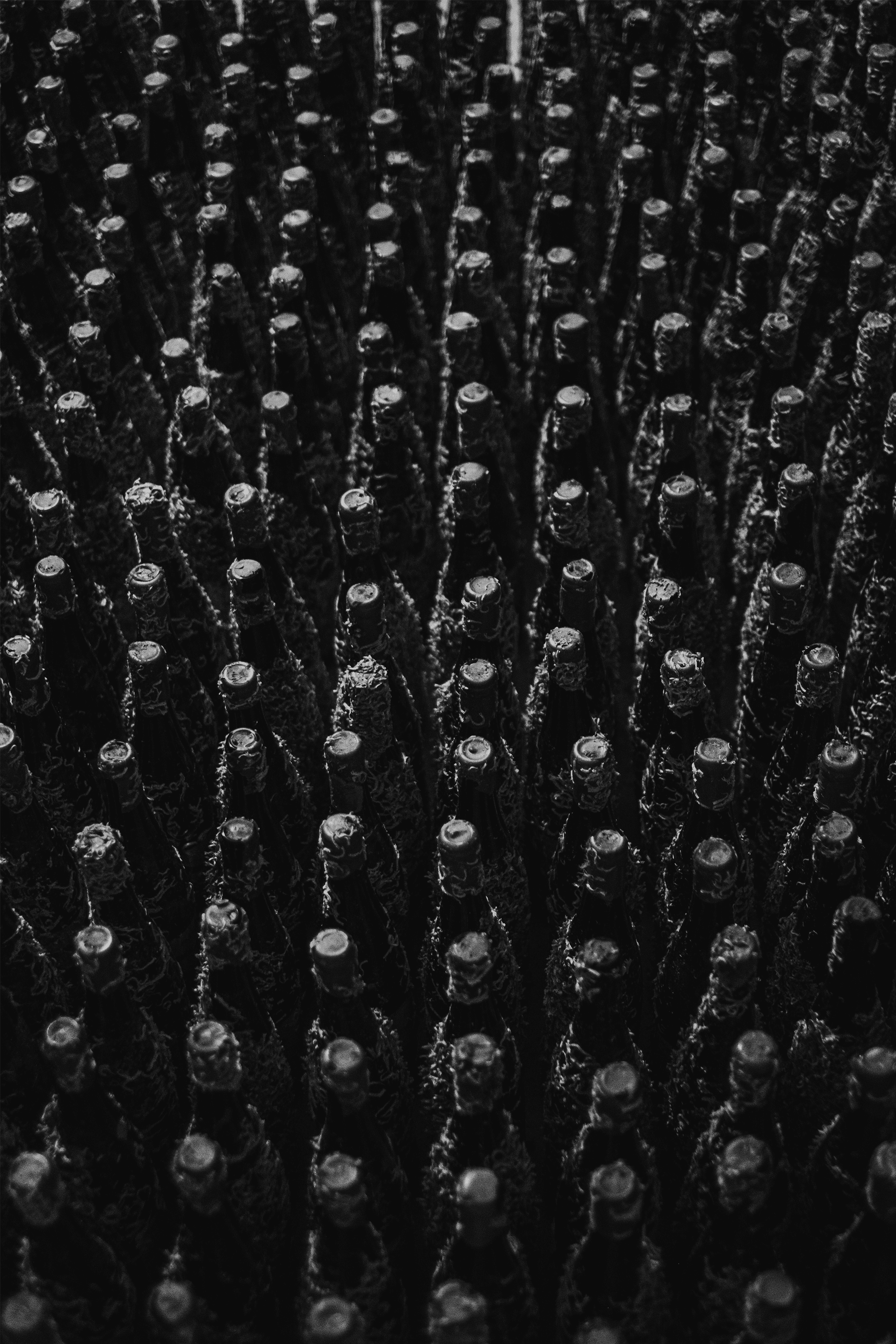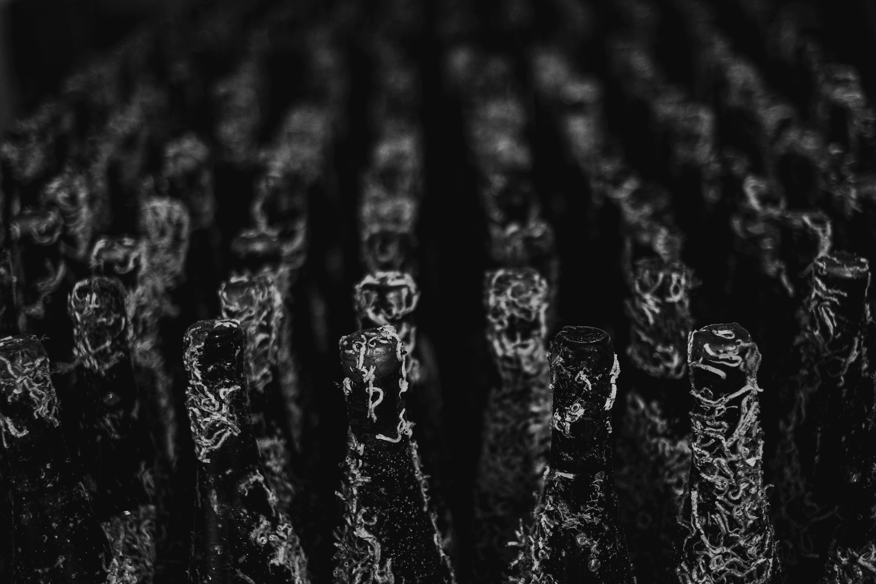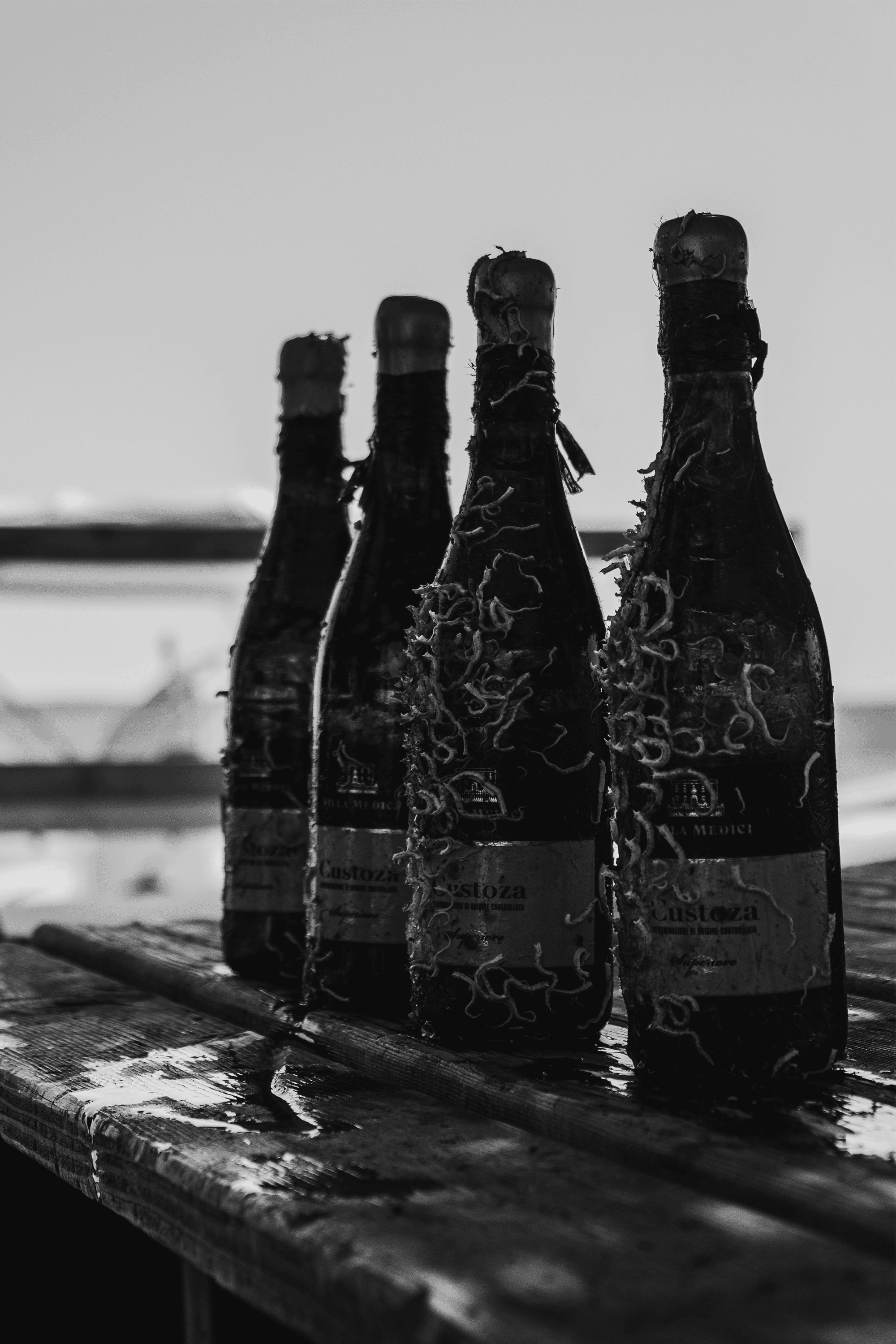 Our underwater infrastructure works in harmony with nature, and the results speak for themselves. Wildlife has returned to the valley, and our bottles are covered in corals, mostly made up of little worms that clean the sea bed. This biodiversity allows us to create state-of-the- art bottle designs. The bottles age in the absence of light, complete silence, and constant temperature, while being exposed to the continuous pressure and vibrations of the sea current. This dynamic environment accelerates the aging process and contributes to the unique character of our wines.